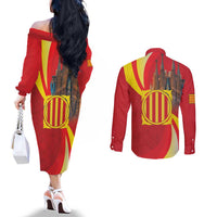 Catalonia Spain Couples Matching Off The Shoulder Long Sleeve Dress and Long Sleeve Button Shirt Basilica de la Sagrada Familia LT18