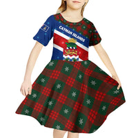Cayman Islands Xmas Kid Short Sleeve Dress Christmas Plaid Turtle and Coat of Arms Red Green Blue