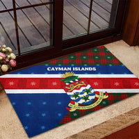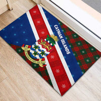 Cayman Islands Xmas Rubber Doormat Christmas Plaid Turtle and Coat of Arms Red Green Blue