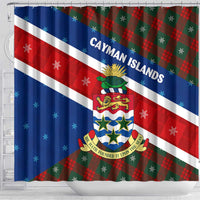 Cayman Islands Xmas Shower Curtain Christmas Plaid Turtle and Coat of Arms Red Green Blue