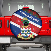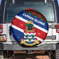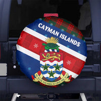 Cayman Islands Xmas Spare Tire Cover Christmas Plaid Turtle and Coat of Arms Red Green Blue