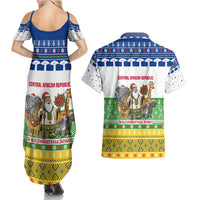Central African Republic Christmas Couples Matching Summer Maxi Dress and Hawaiian Shirt with Santa and Safari Animals Baobab Trees Snowflakes and Tribal Pattern TS04
