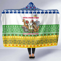 Central African Republic Christmas Hooded Blanket with Santa and Safari Animals Baobab Trees Snowflakes and Tribal Pattern TS04
