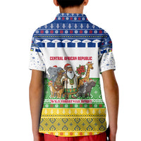 Central African Republic Christmas Kid Polo Shirt with Santa and Safari Animals Baobab Trees Snowflakes and Tribal Pattern TS04