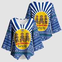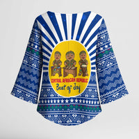 Add a chic touch to your wardrobe with the Central African Republic Christmas Kimono Sleeve Blouse with Drumming Kids Beat of Joy Tribal Pattern and Snowflakes from Wonder Print Shop. Designed for versatility, this V-neck blouse features flowing kimono-style sleeves and a relaxed fit — perfect for both casual and dressy occasions. Crafted with premium polyester fabric, it offers a soft, lightweight feel for all-day comfort.