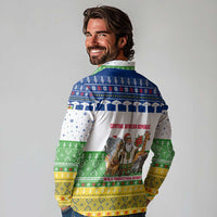 Central African Republic Christmas Long Sleeve Polo Shirt with Santa and Safari Animals Baobab Trees Snowflakes and Tribal Pattern