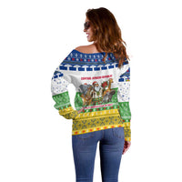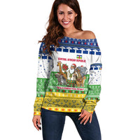 Central African Republic Christmas Off Shoulder Sweater with Santa and Safari Animals Baobab Trees Snowflakes and Tribal Pattern TS04