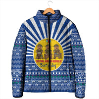 Ready to upgrade your cold-weather wardrobe? Get the Central African Republic Christmas Padded Jacket with Drumming Kids Beat of Joy Tribal Pattern and Snowflakes by Wonder Print Shop now and enjoy reliable warmth with everyday style.