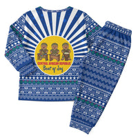 Central African Republic Christmas Pajama Set with Drumming Kids Beat of Joy Tribal Pattern and Snowflakes TS04