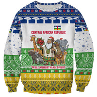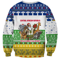 Central African Republic Christmas Sweatshirt with Santa and Safari Animals Baobab Trees Snowflakes and Tribal Pattern