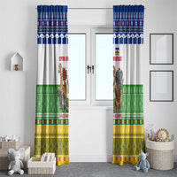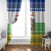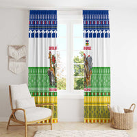 Central African Republic Christmas Window Curtain with Santa and Safari Animals Baobab Trees Snowflakes and Tribal Pattern