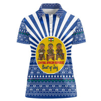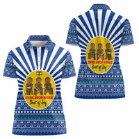 Central African Republic Christmas Women Polo Shirt with Drumming Kids Beat of Joy Tribal Pattern and Snowflakes