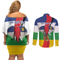 Central African Republic Republic Day 1958 Couples Matching Off Shoulder Short Dress and Long Sleeve Button Shirt Unite, Dignite, Travail - Flag Style