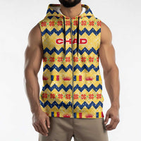 Stay active and stylish with the Chad Christmas Sleeveless Zip Hoodie with Yellow-Blue Geometric Design, National Coat of Arms, and Festive Motif from Wonder Print Shop. Designed for those on the move, this sleeveless zip hoodie blends flexibility, breathability, and a sleek look. Perfect for workouts, outdoor activities, or casual wear, it’s a wardrobe essential that works as hard as you do.