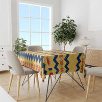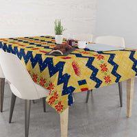 Chad Christmas Tablecloth with Yellow-Blue Geometric Design, National Coat of Arms, and Festive Motif TS04