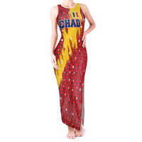Chad Christmas Tank Maxi Dress with Red-Yellow Festive Pattern, National Coat of Arms, and Snowflake Accents TS04