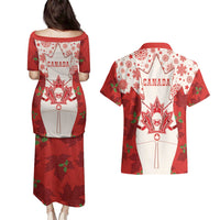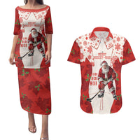 Christmas Canada Hockey Couples Matching Puletasi and Hawaiian Shirt Merry Hockey-Mas Maple Leaves Pattern