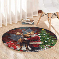 Christmas Canada Round Carpet Merry Moose-Mas Santa Hugging A Moose