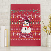 Christmas Chillin With My Snowmies Canvas Wall Art Cool Snowman Red Snowflake Light String