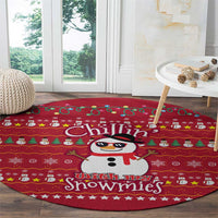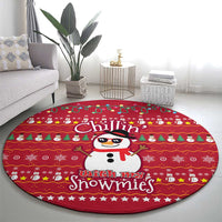 Christmas Chillin With My Snowmies Round Carpet Cool Snowman Red Snowflake Light String