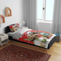 Christmas Costa Rica Bedding Set A Cheerful Sloth Wearing a Santa Hat LT18