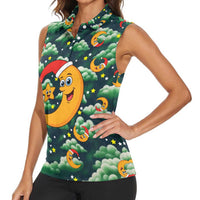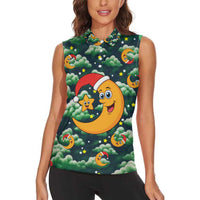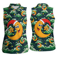 Christmas Moon and Star Women Sleeveless Polo Shirt Xmas Holiday Patterns TS04