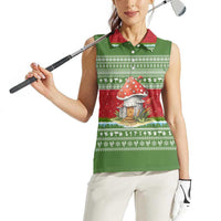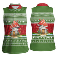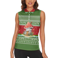 Christmas Mushroom House Women Sleeveless Polo Shirt Xmas Holiday Patterns TS04