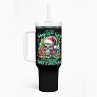Christmas Skull Tumbler With Handle On The Naughty List I Regret Nothing