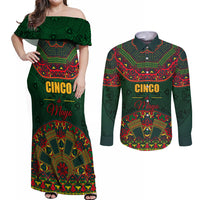 Cinco de Mayo 2024 Couples Matching Off Shoulder Maxi Dress and Long Sleeve Button Shirt Mexican Folk Pattern