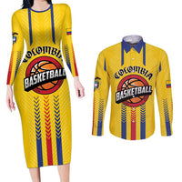 Colombia Basketball Custom Couples Matching Long Sleeve Bodycon Dress and Long Sleeve Button Shirt Vamos Colombiana