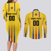 Colombia Basketball Custom Couples Matching Long Sleeve Bodycon Dress and Long Sleeve Button Shirt Vamos Colombiana LT01
