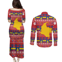 Colombia Christmas Couples Matching Puletasi and Long Sleeve Button Shirt Libertad y Orden With Feliz Navidad
