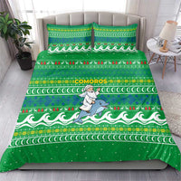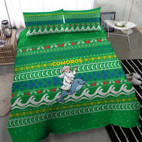 Comoros Christmas Bedding Set with Santa Riding Dolphin Ocean Waves Crescent Moon and Tribal Pattern TS04