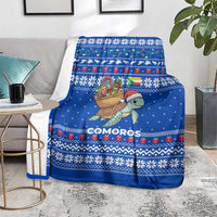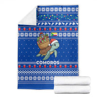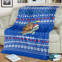 Comoros Christmas Blanket with Santa Turtle Gifts Snowflakes and Ocean Blue Holiday Pattern