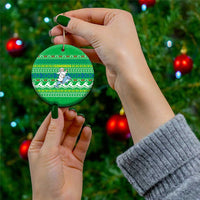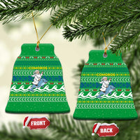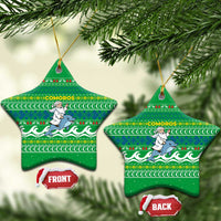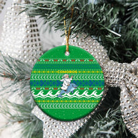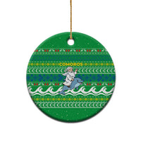 Comoros Christmas Ceramic Ornament with Santa Riding Dolphin Ocean Waves Crescent Moon and Tribal Pattern