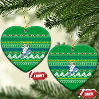Comoros Christmas Ceramic Ornament with Santa Riding Dolphin Ocean Waves Crescent Moon and Tribal Pattern TS04