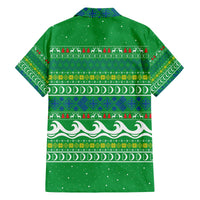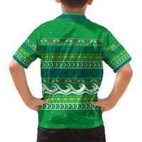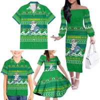 Comoros Christmas Family Matching Off The Shoulder Long Sleeve Dress and Hawaiian Shirt with Santa Riding Dolphin Ocean Waves Crescent Moon and Tribal Pattern