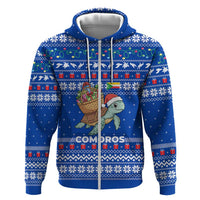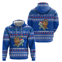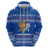 Comoros Christmas Hoodie with Santa Turtle Gifts Snowflakes and Ocean Blue Holiday Pattern