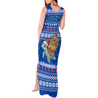 Comoros Christmas Tank Maxi Dress with Santa Turtle Gifts Snowflakes and Ocean Blue Holiday Pattern