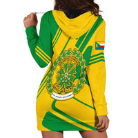 Comoros Flag Hoodie Dress with Green and Yellow Design and National Emblem
