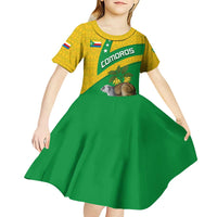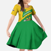 Comoros Kid Short Sleeve Dress with National Flag Lemur Design and Ylang Ylang Flower Pattern