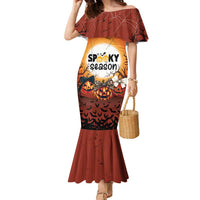 Coquette Pumpkin Halloween Family Matching Mermaid Dress and Hawaiian Shirt It's Spooky Season