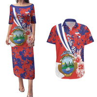 Costa Rica Couples Matching Puletasi and Hawaiian Shirt Coat of Arms Hibiscus Pattern