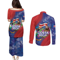 Costa Rica Independence Day Couples Matching Puletasi and Long Sleeve Button Shirt 204 Years Of Freedom