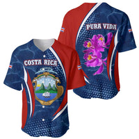 Costa Rica Orchid Baseball Jersey Red and Blue with National Emblem and Purple Flower Design