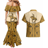 Cowboy Couples Matching Mermaid Dress and Hawaiian Shirt Horse Riding Retro Western Yoke Beige