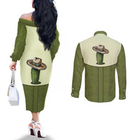 Cowboy Couples Matching Off The Shoulder Long Sleeve Dress and Long Sleeve Button Shirt Cactus Retro Western Yoke