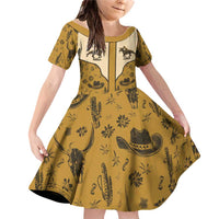 Cowboy Family Matching Off Shoulder Short Dress and Hawaiian Shirt Horse Riding Retro Western Yoke Beige DT05