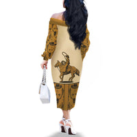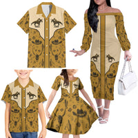 Cowboy Family Matching Off The Shoulder Long Sleeve Dress and Hawaiian Shirt Horse Riding Retro Western Yoke Beige