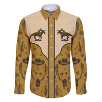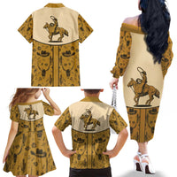 Cowboy Family Matching Off The Shoulder Long Sleeve Dress and Hawaiian Shirt Horse Riding Retro Western Yoke Beige DT05